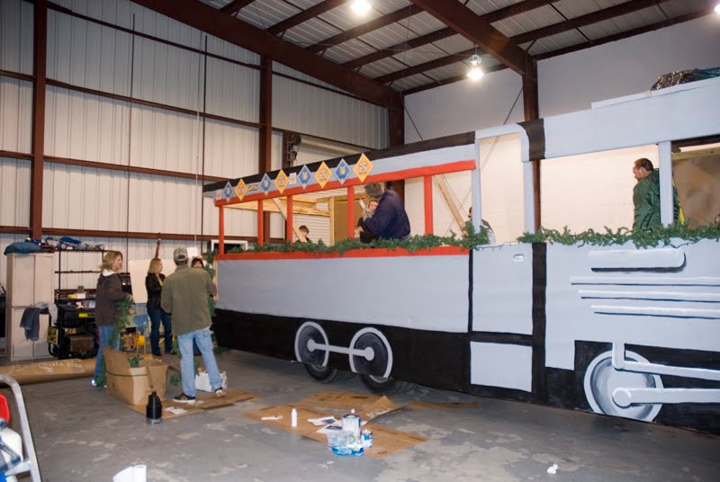 Everyone pitched in, hanging garland, stringing lights and getting everything ready for in the morning.